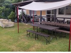 - パラソル広げたピクニックテーブルでご家族ご 友人とこじんまりとやるも良し。 会社やサークルのみんなで集って店ごと貸し切ってわいわい がやがやとやるも良し(貸切40名様以上)。