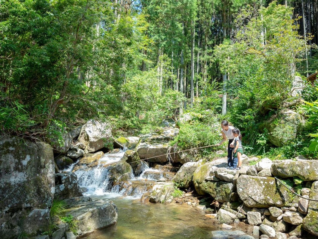 - お子様も大好きなラムネジュース付き!! 渓流で釣り体験→釣った魚を使っての料理を満喫! 自分で釣った魚は一味違いますよ! 釣れなくても2匹は保証するので安心♪