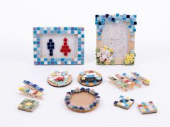 - カラフルなタイルをつかって、オリジナルの作品をつくりましょう。身の回りで活躍するアイテムを豊富にご用意しています。タイルをボンドで自由にはり付ける、小さいお子様でも参加できる体験教室です。