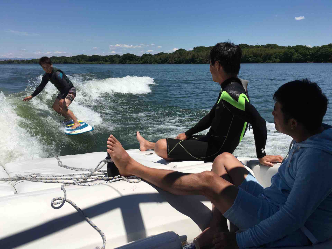ポイント2%船の上で練習した後、1回目は短いロープ、2回目は長いロープでボードに乗りました。参加者で一定時間ずつ...by ゆずさん