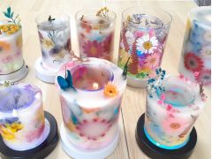 【ボタニカルキャンドル体験・鈴鹿サーキットすぐ】半透明感のあるキャンドルとお花で癒し体験しませんか?選べる自家製花材は約300種類!簡単キレイ!伝統工芸作家が教えます。