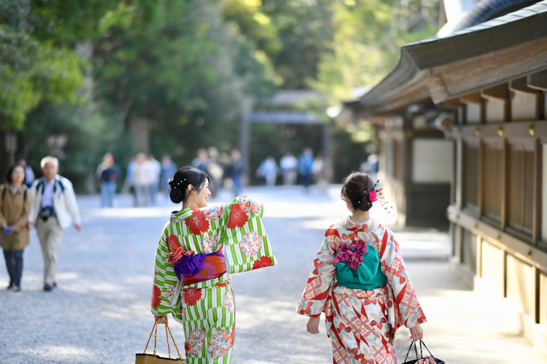 - レトロな着物で伊勢神宮を参拝して思い出作り。 着物に着替えて特別な一日を過ごしましょう。