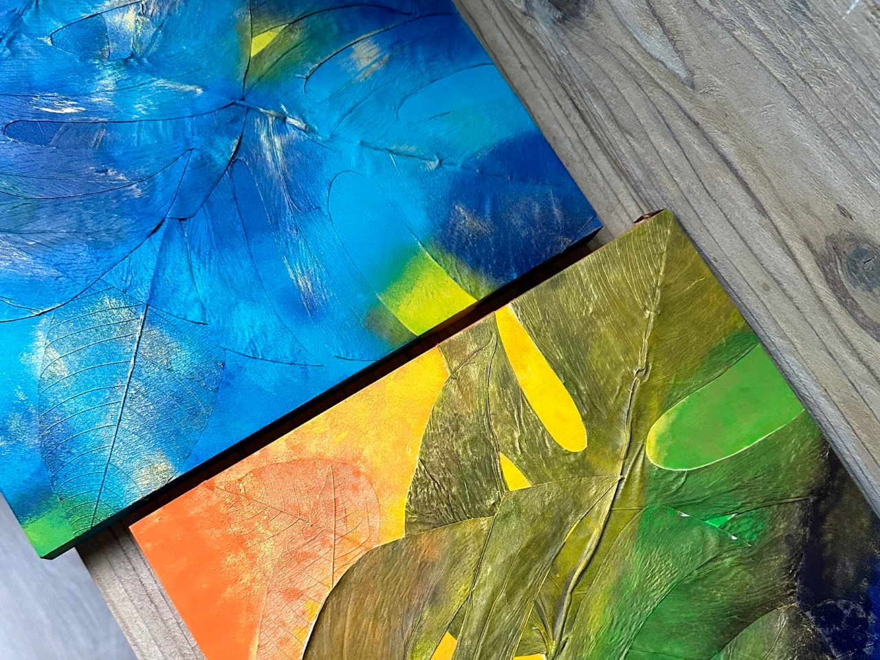 - ボタニーペインティングとは乾燥させた蓮の葉、ゴムの葉、菩提樹の葉に着彩するアートです。 初心者の方大歓迎♪誰でも簡単に素敵な作品をお作りいただけます♪