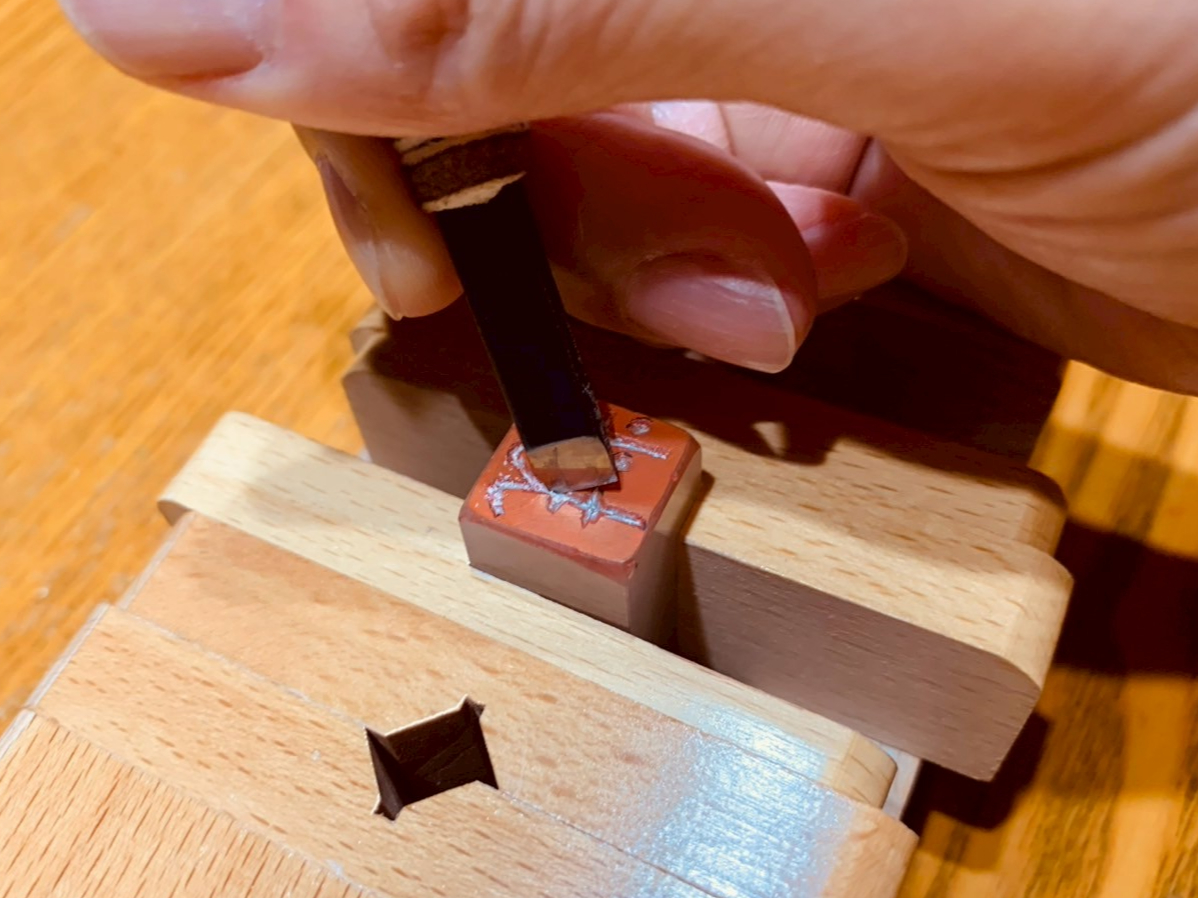 - 15mm角の石の印材にお好きな漢字1文字を彫る体験です。 一級印章彫刻技能士・京もの認定工芸士が講師をいたします。 ご自身で彫った世界で一本のはんこを持って帰って頂き、手紙や書・画に押してみませんか。