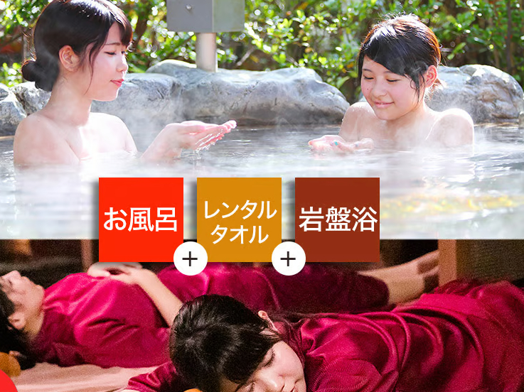 - 平日【570円引き】入浴・岩盤+レンタルフェイスタオル・バスタオル(お水つき)手...