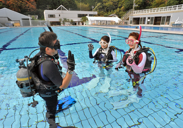 - 初心にかえって復習しよう。ブランクダイバー向けプラン 専用プールで実習。海に出るための自信をもてますよ