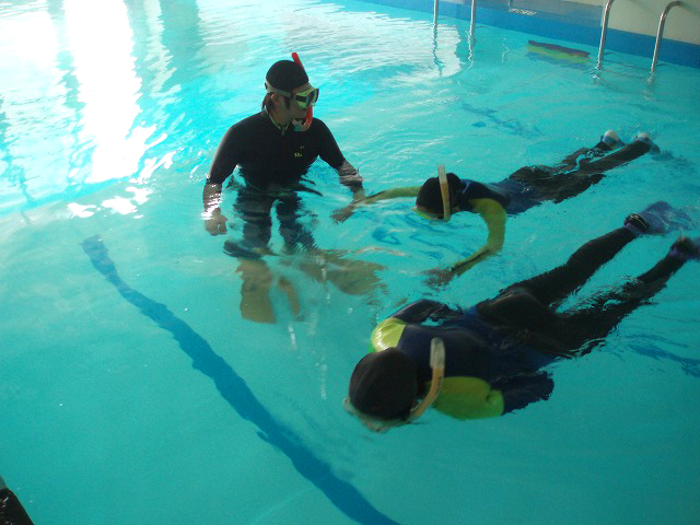 - ◆冬季でも安心!温水プールにて講習致しますので、1年中ウェットスーツで実施できます♪ ◆マスク・スノーケル・フィン・ウェットスーツ・ブーツのレンタル希望の方はご予約時にセット料金をお選びいただけます。