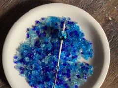 工芸用の色ガラス素材という特殊なガラス。これは、普通のガラスよりも低温で溶け、柔らかく細工が施しやすいため、細かな立体やたくさんの色を組み合わせることができます。 このガ...