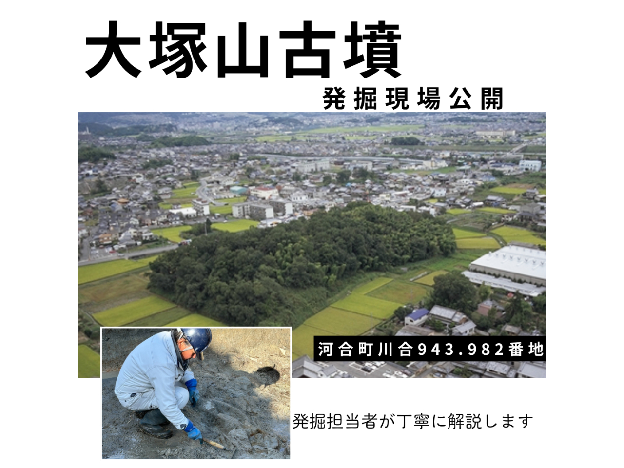 - 発掘調査中である大塚山古墳の歴史に触れるツアー。
