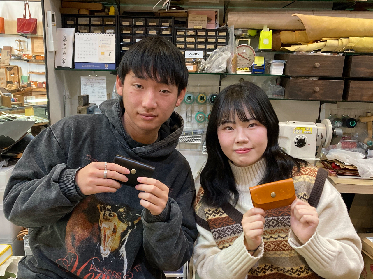 - 奈良で本格レザー体験♪ レザーを留めていけばあら不思議!コインケースの出来上がり♪ 針を使わないのでお子様にもオススメです。 ぜひお越しくださいませ!!