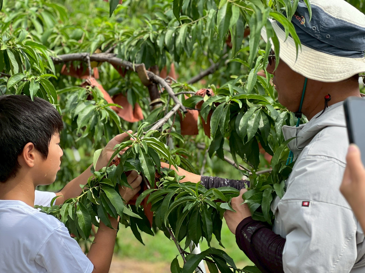 - 秋まで楽しめる桃農園体験♪農家直伝の話とさんぽ、最後は直営店で自慢の桃のドリンク「桃テイン」を堪能。