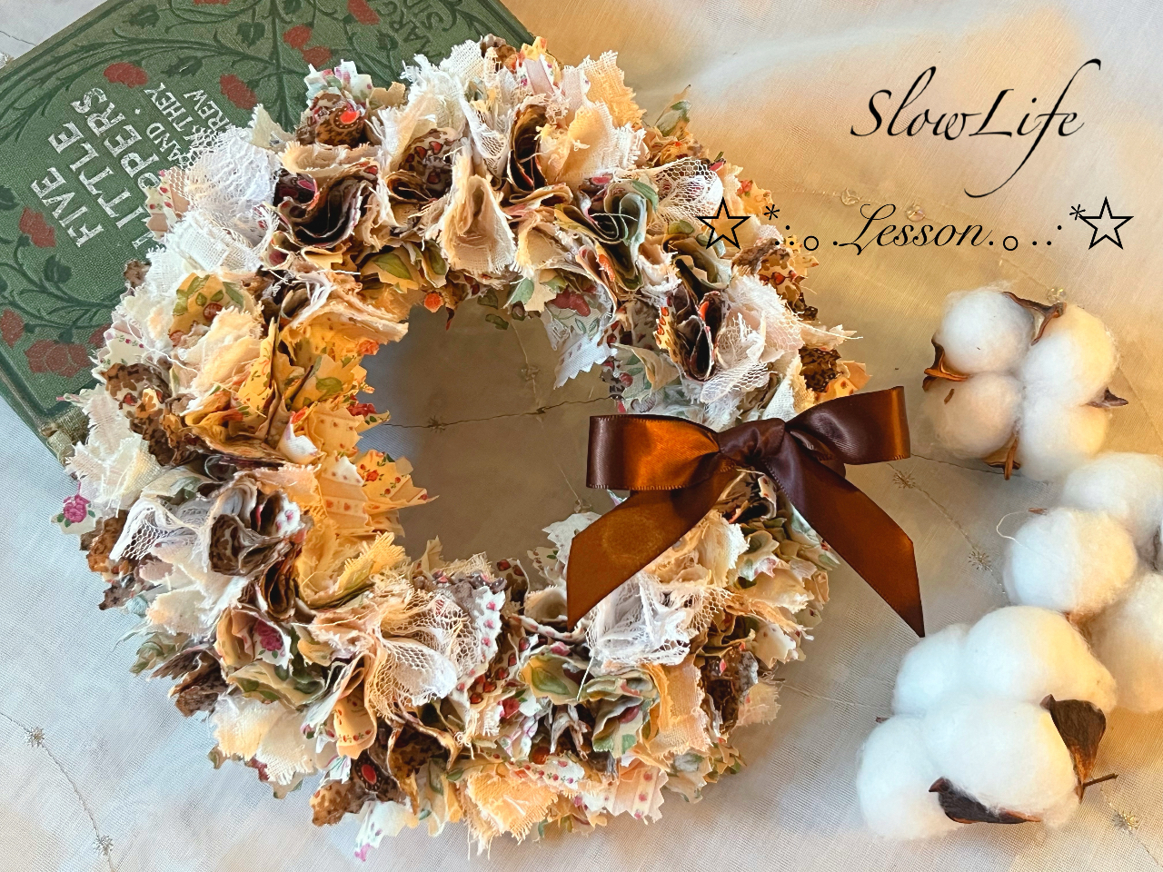 - 生地を使用したかわいい布リース。温かみのある、おしゃれでかわいいmaman布リースです。