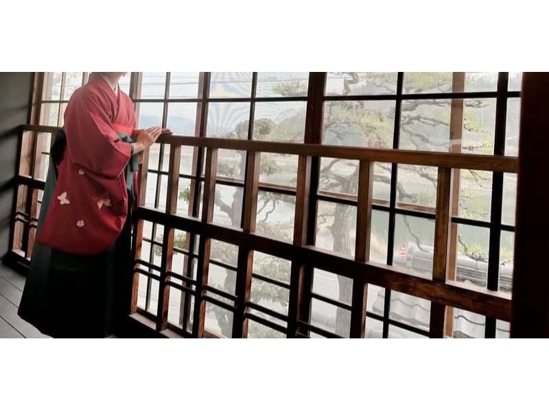 - 〜着物・袴レンタル 着付け体験〜 着物・袴を着て、約100年前の古民家で写真撮影♪ 昭和ガラスのある廊下で映える写真を撮影