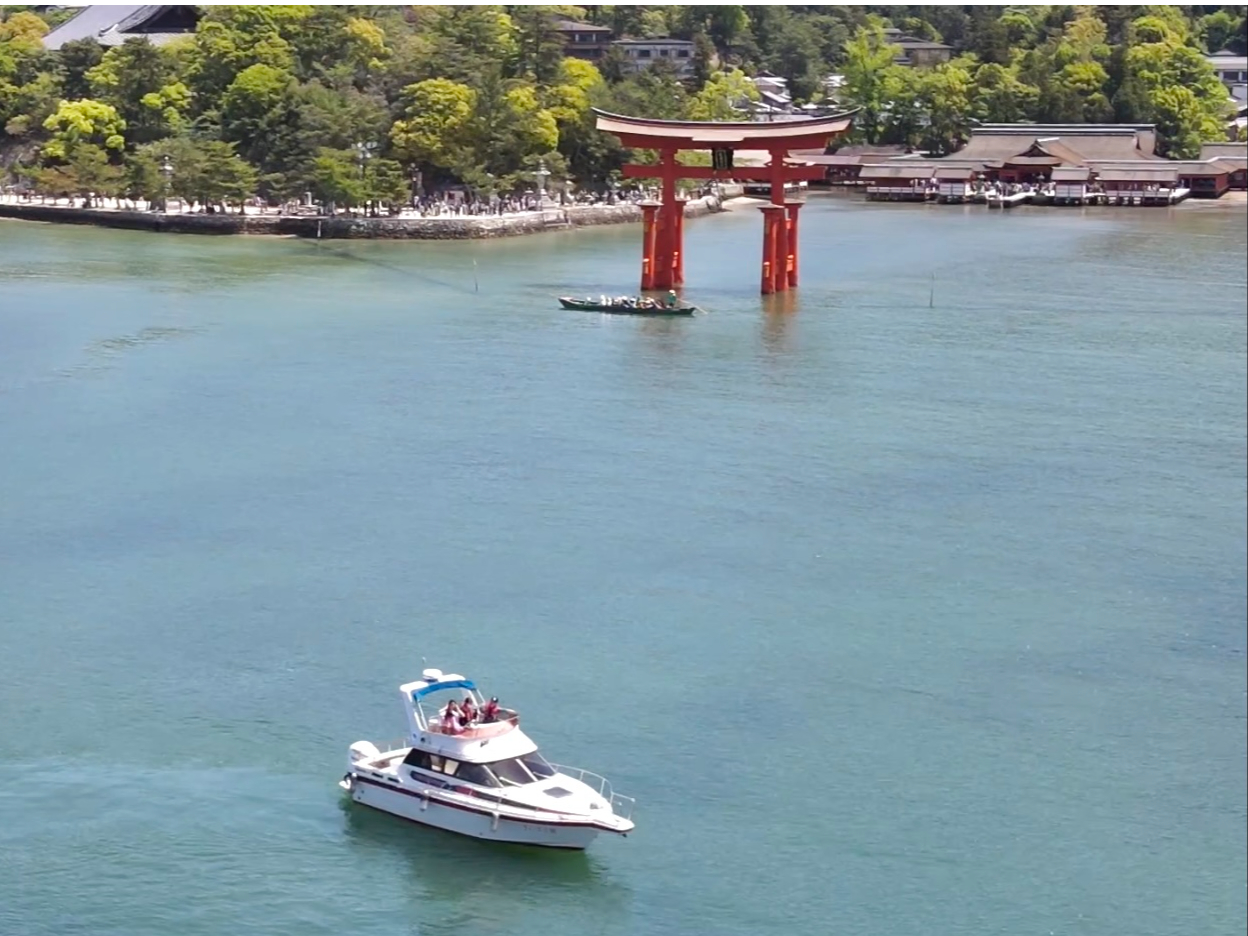 - 廿日市港発プラン※船上から厳島神社を参拝付き ★宮島ショートクルーズ&ドローン(行程時間約1時間)宮島上陸無しコース 3人~予約可です!