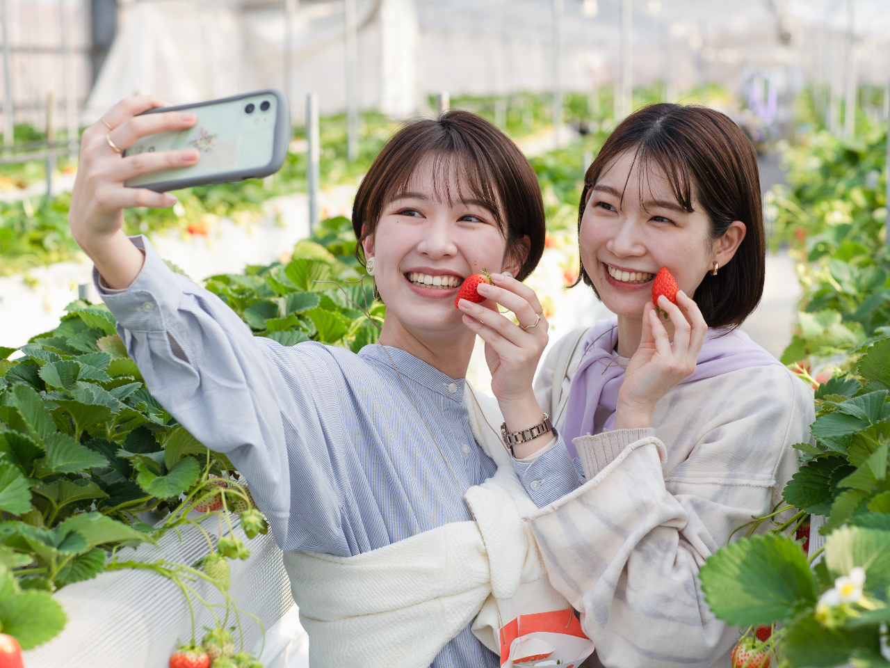 旬のフルーツ狩りが一年中楽しめる観光農園。園内には採れたてフルーツのデザートや、地元の食材を使った田舎料理を満喫できる。フルーツピザやパフェづくり体験もできる。