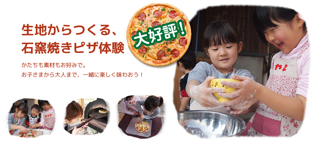 - 地元でとれた自然の恵みたっぷりの贅沢ピザ! 薪と石窯で焼き上げたピザは絶品ですよ〜! お子様も一緒に楽しめます♪