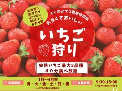 - ・かおり野が食べ放題 ・高設栽培のため、らくちん ・高設栽培のため、汚れない ・駐車場無料完備
