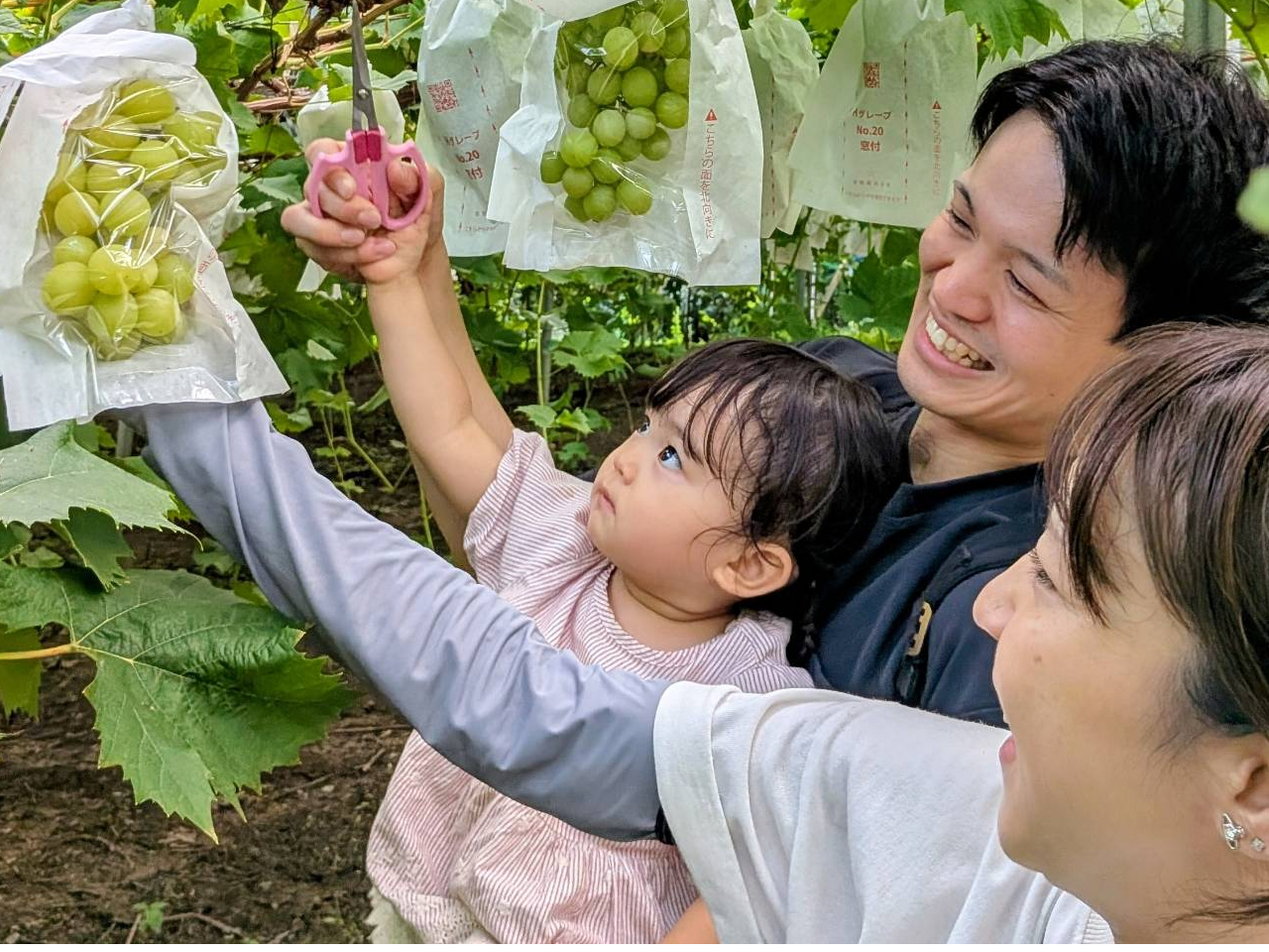 - ★「シャインマスカット1房」と、園主おススメの「旬のぶどう1房」収穫できます♪ ★暑い日にピッタリ"ぶどうの氷果実"or手揉みぶどうジュース作り体験含む 6つの特典付き! ★お子様の食育にも最適!
