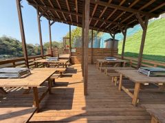 - オススメポイント ・海がみえるおしゃれなウッドデッキ ・ミニジップラインや大型トランポリンも設置 ・屋根があるから暑さ、雨対策もばっちり