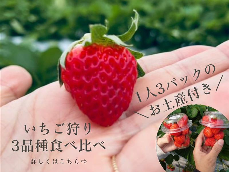 - 【お土産付/3品種60分いちご狩り】3パックお土産付き&いちご3品種食べ放題60...