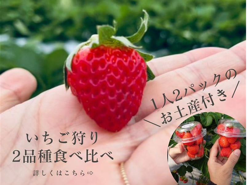 - 【お土産付/2品種45分いちご狩り】2パックお土産付き&いちご2品種食べ放題45...