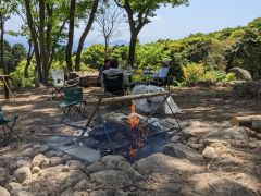 - 海を望む森のキャンプ場、車乗り入れ可、直火OK、サウナ有!