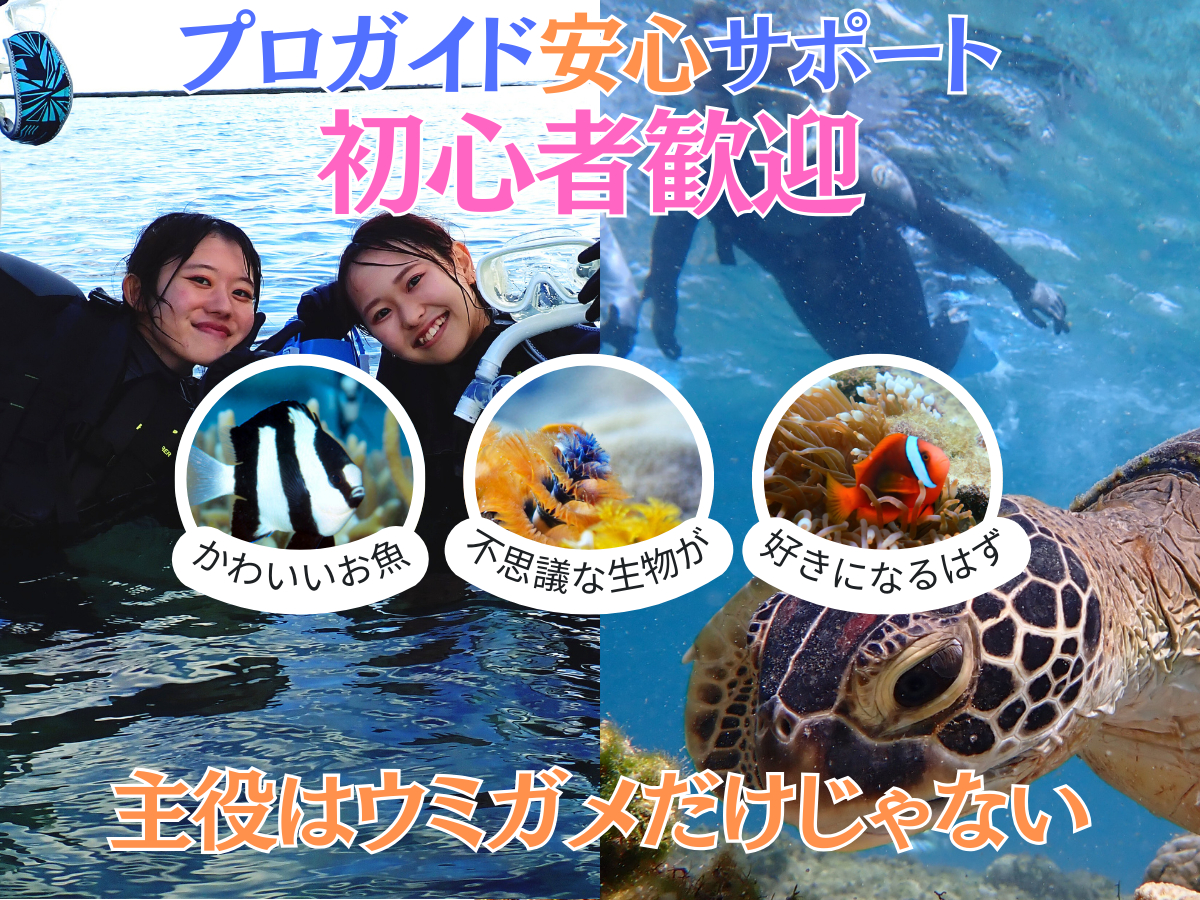 - ウミガメだけじゃなく、 かわいい魚や不思議な生き物たちも好きになるはず…☆ 探して、見つけて、心まで夢中になる 海体験をお届けします♪