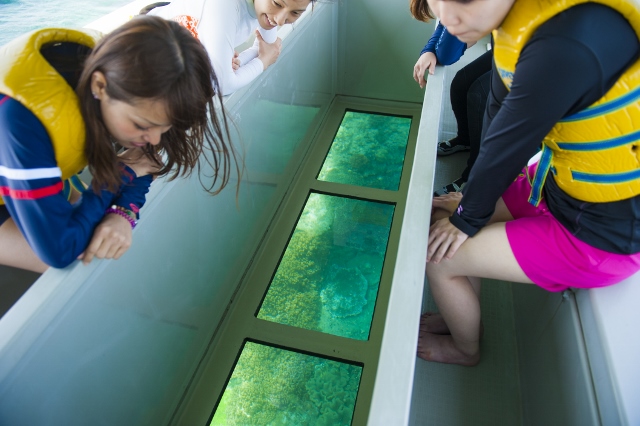 - グラスボートは船の底がガラス窓になっている船で、海の中の世界を観察することができます。 間近で見るジンベエザメは迫力満点です!小さなお子様からおじいちゃん、おばあちゃんまで楽しんで頂けます。