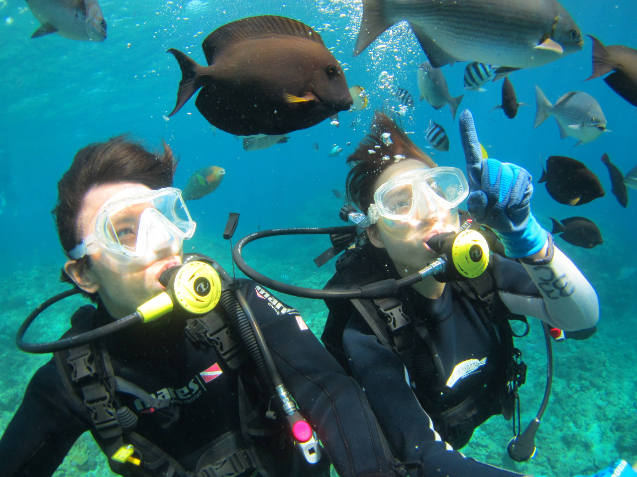 - インストラクター1人につき体験ダイビングは2人までなので、少人数制で安心!ダイビングをやってみたいけど、本格的にライセンスを取る前にちょっと体験してみたい、という方のための体験ダイビングプラン!!
