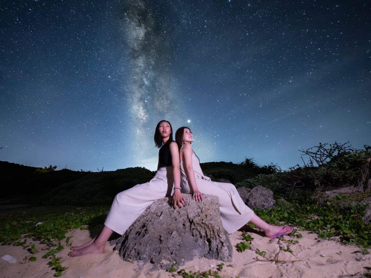 - きれいな夜に出かけましょう ビーチで波の音を聞きながら、満天の星空を 気軽に ポートレート撮影 眠っていたらもったいない!星降る夜をお楽しみください