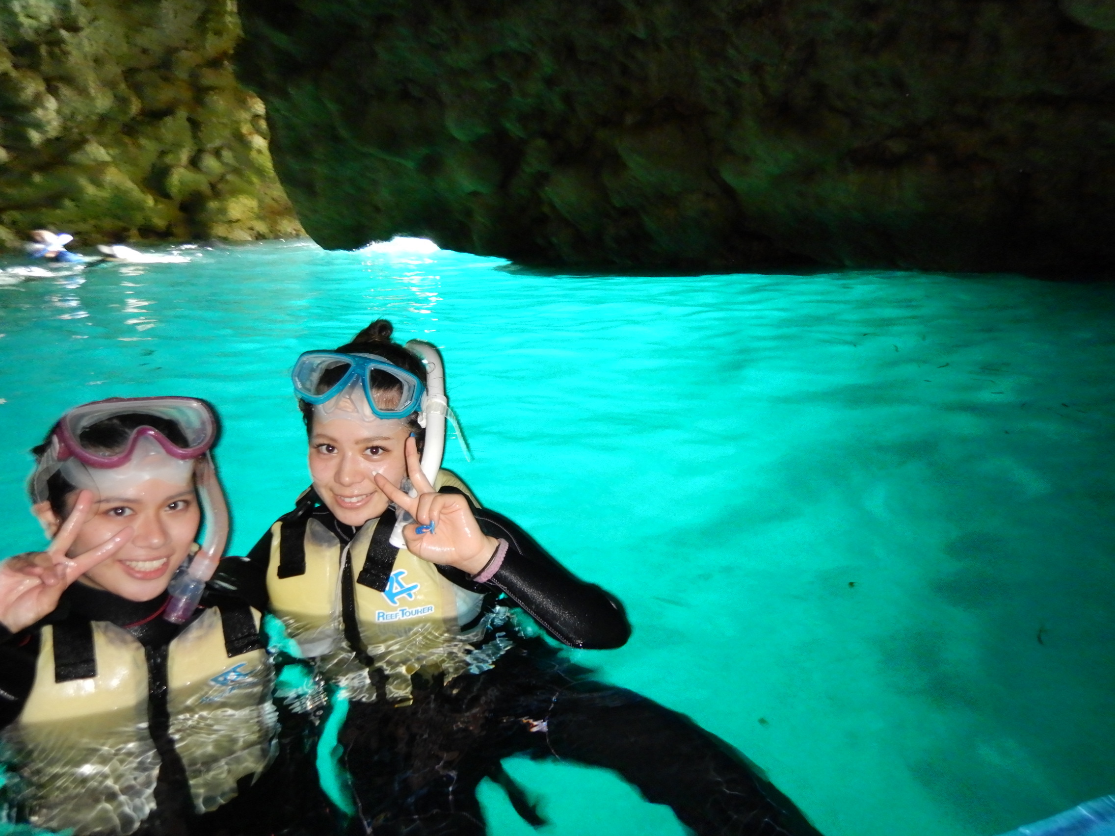 - ●温水シャワー・更衣室・ドライヤー・駐車場無料! ●初心者でも安心! ●青の洞窟のクリスタルブルーと外洋に広がるディープブルーとカラフルな熱帯魚 この体験、感動間違いなし!!