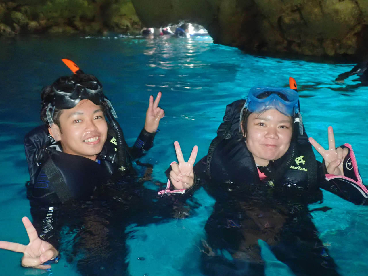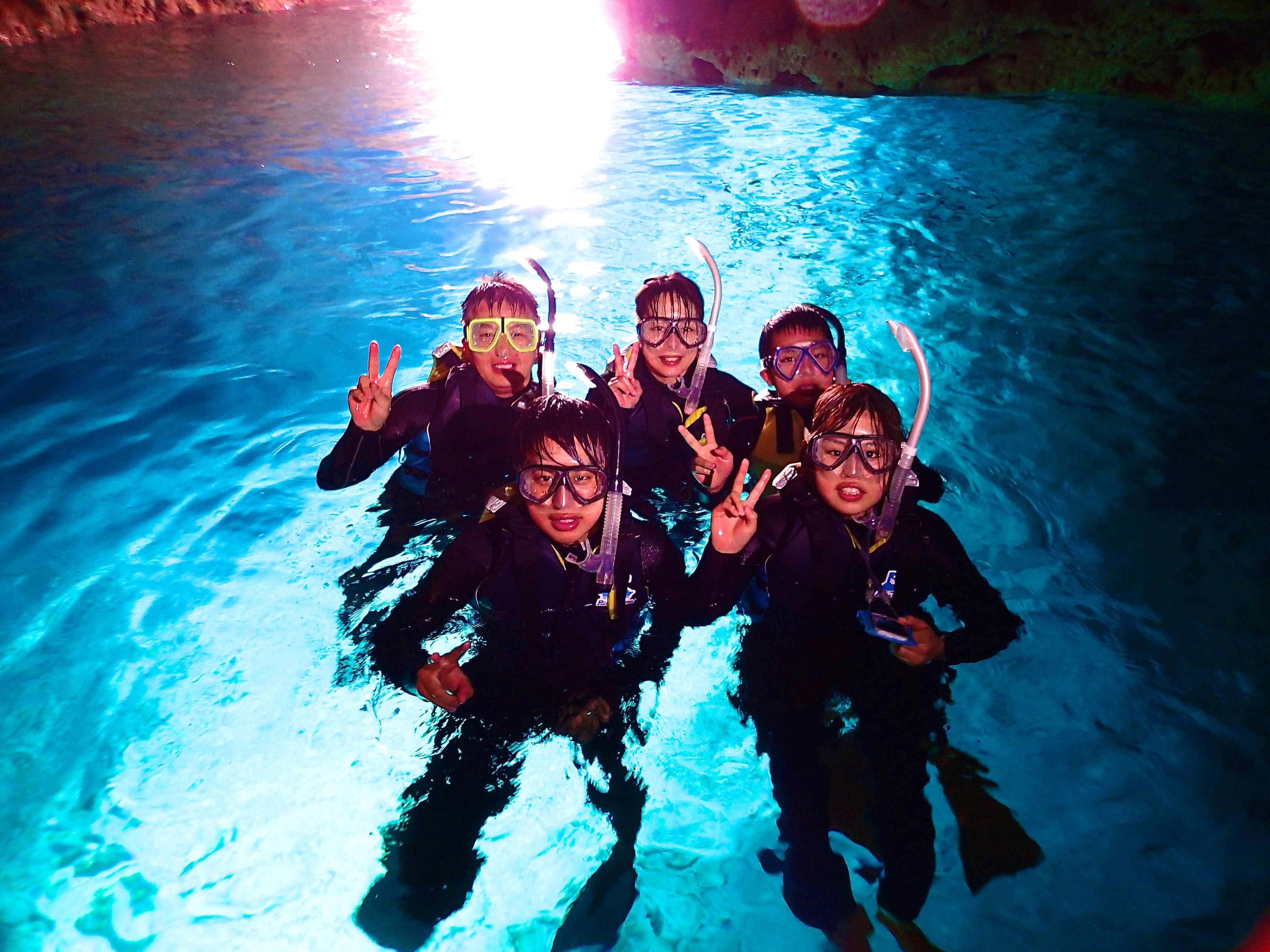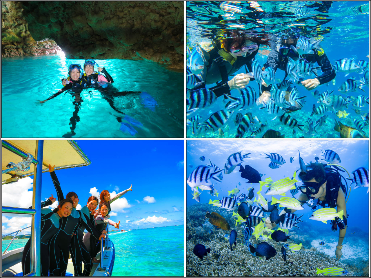 - ●温水シャワー・更衣室・ドライヤー・駐車場無料! ●初心者でも安心! ●青の洞窟のクリスタルブルーと外洋に広がるディープブルーとカラフルな熱帯魚 この体験、感動間違いなし!!