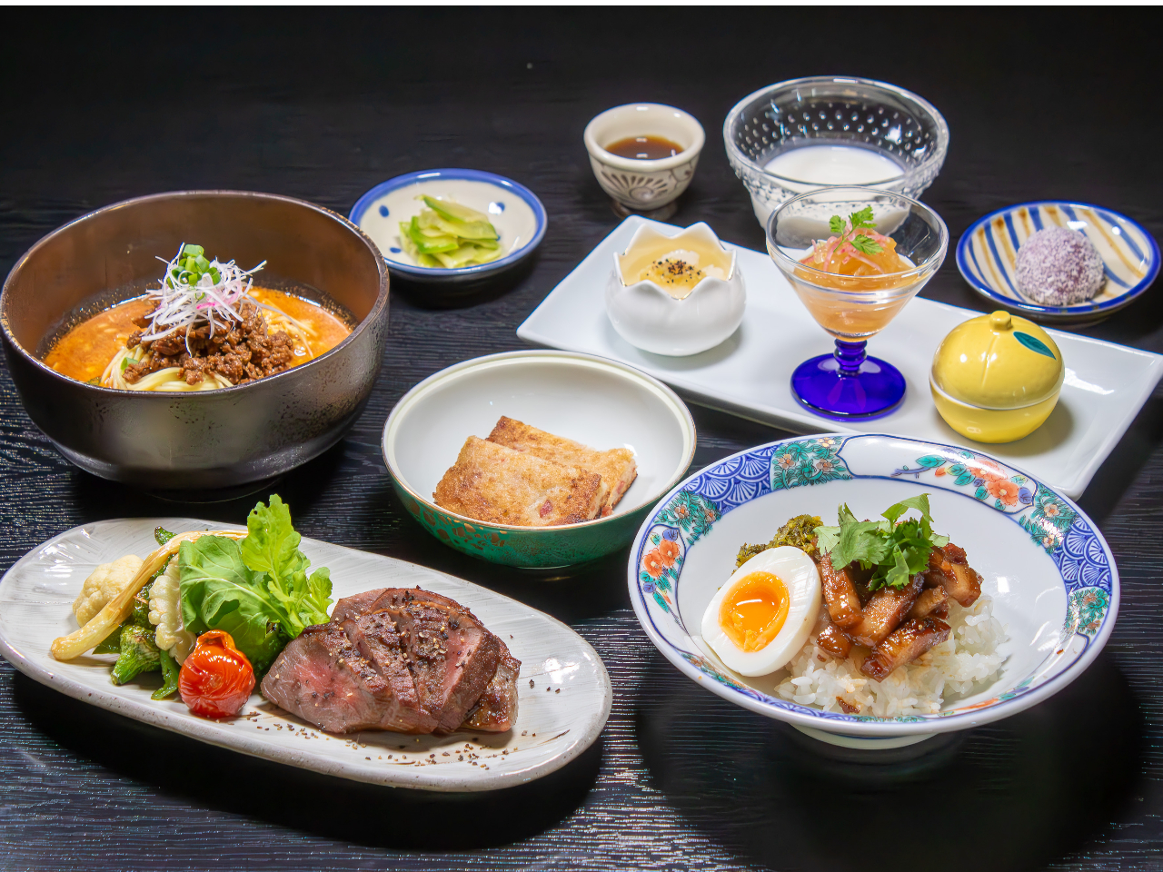 - 沖縄県産「なんじょう和牛」のステーキをメインに、温野菜、サラダ・本日の一品(日替わり)御膳をご用意いたしました。