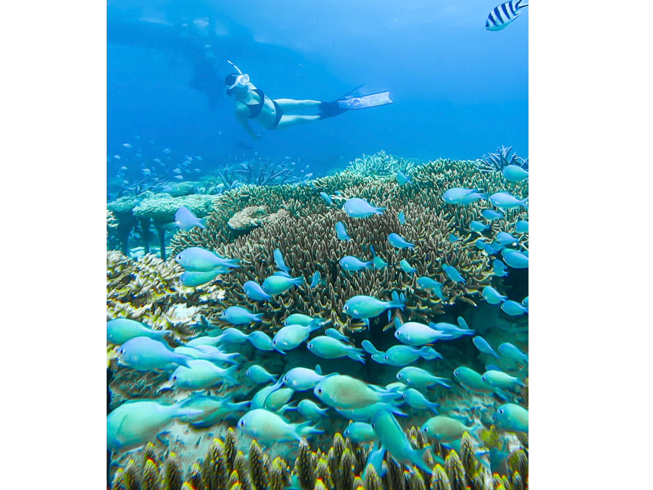 - バツグンな透明度を誇る伊江島の海をご案内します。 気軽に伊江島の海を満喫したい方にオススメなのがシュノーケリングです。 色鮮やかな珊瑚礁とカラフルなお魚たちに囲まれて泳いでみませんか?