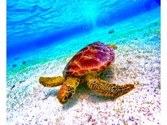 - ウミガメと高確率で出会える!瀬底島&水納島の美しい海でシュノーケリング。少人数制&貸切ガイドで安心、安全に海の魅力を満喫。