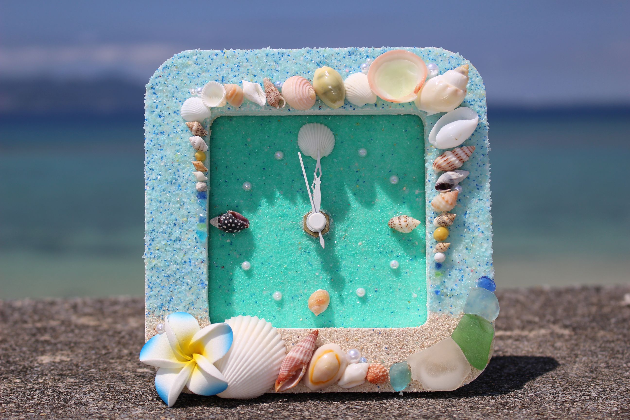 - 貝がらで時計を手作り体験! 文字盤の数字も貝がらで作って世界に一つのクロックを作ろう♪ カラフルな砂や貝がらを自由に使えます^^