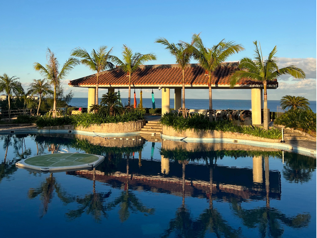 ポイント2%沖縄の青い空、青い海を眺めながらのハンモックヨガ体験を提供しています。 沖縄県北部屈指のリゾートホテル 【オリエンタルホテル沖縄スパ&リゾート】 内プールサイド東屋に...