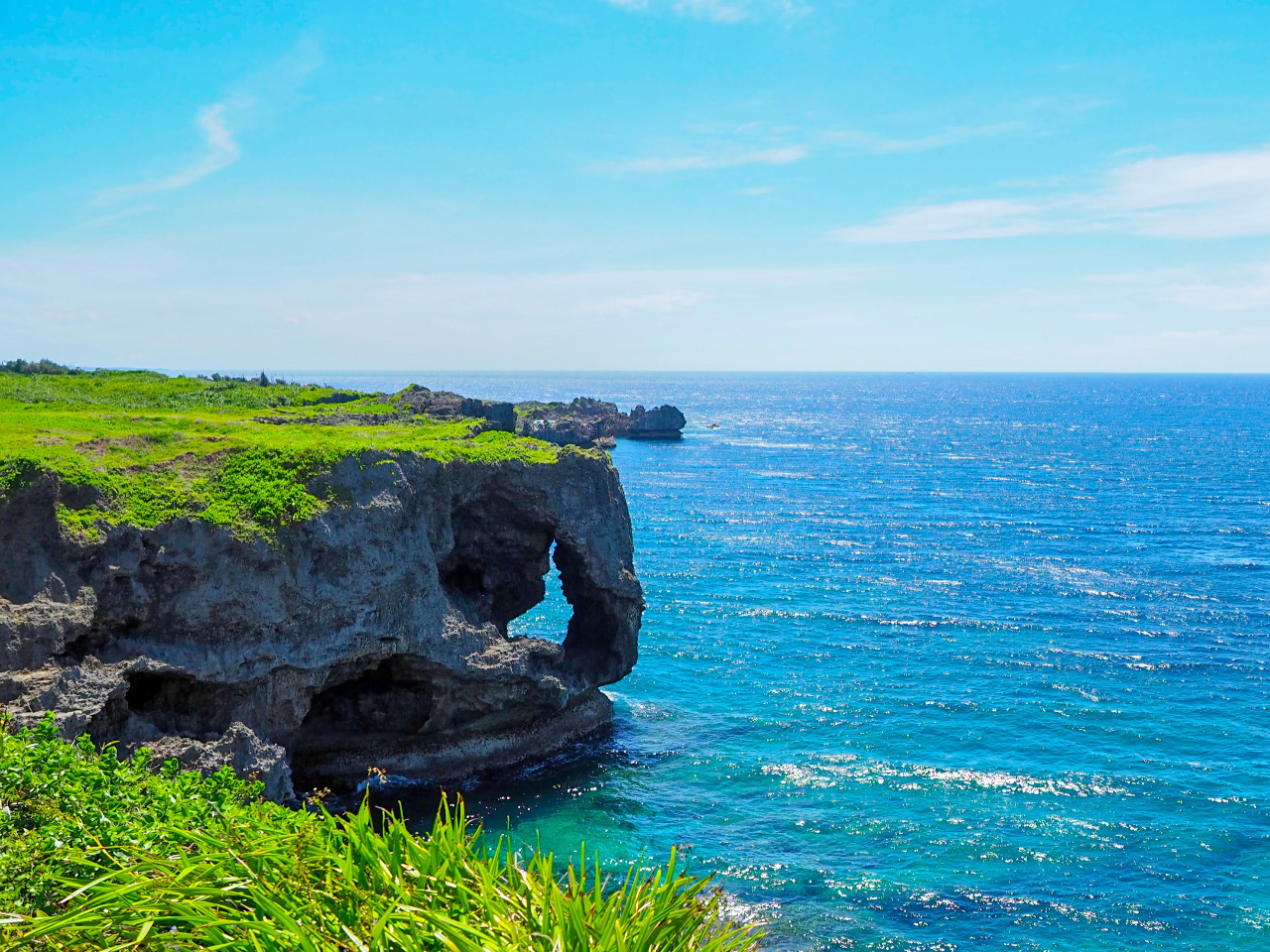高さ20メートルの琉球石灰岩の断崖とその上に広がる芝生の公園。 琉球王、尚敬が「万人が座するに足る毛(野原)」として賞賛し、万座毛という名前がついたと言われています。 晴れた...