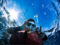 - 水中が不安でも顔が全面覆われてるマスクなので、鼻でも口でも息が出来ます。今まで潜れなかった人もフルフェイスマスクで潜れた人が大勢います。1日4便開催でボート開催ですので体力に自信がなくても大丈夫。