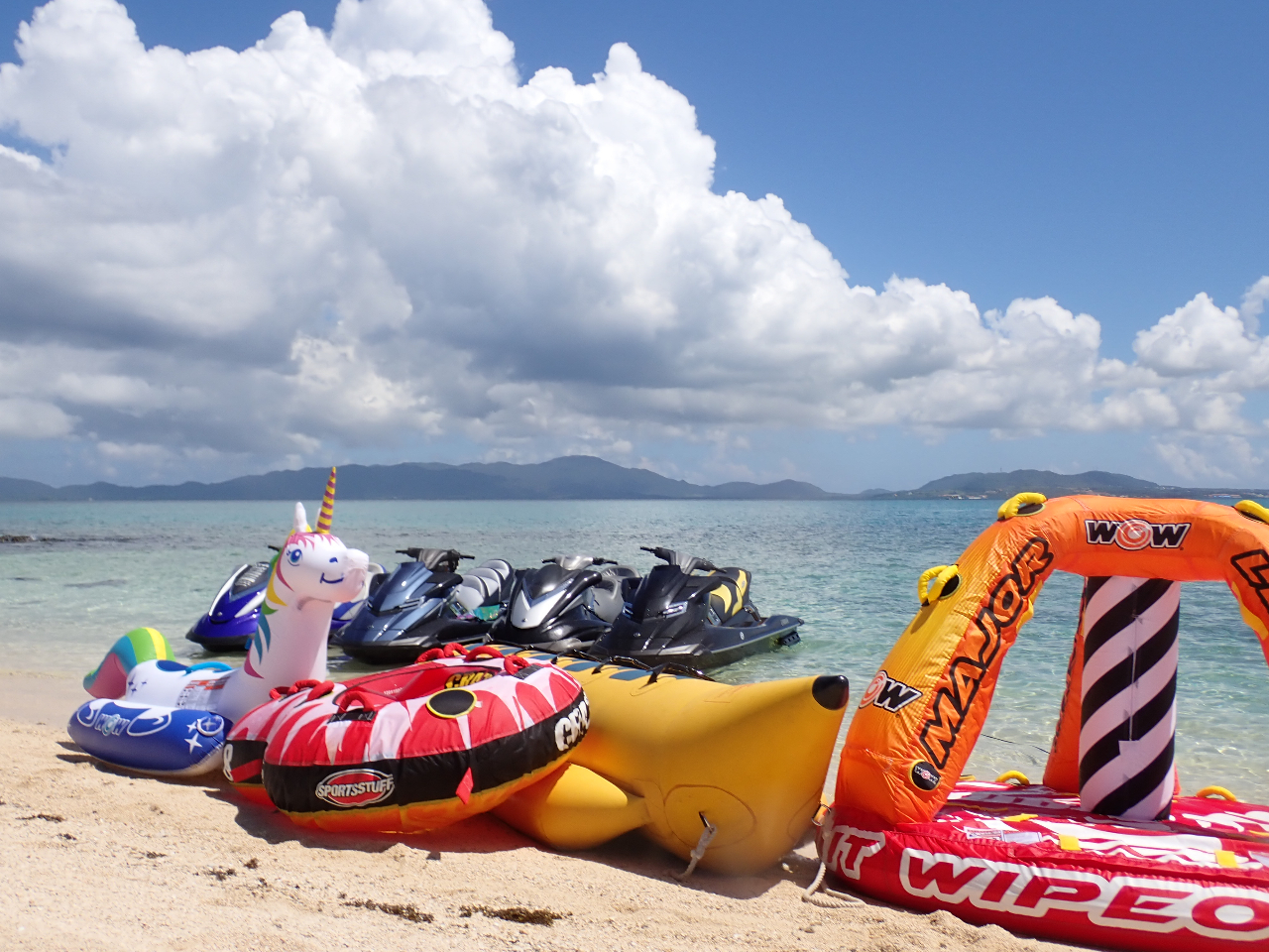 - 石垣島の人気No.1アクティビティ!バナナボートやSUP、ビスケットチューブ、ジェットスキーなど、話題のマリンスポーツ10種類遊び放題で楽しめる大満足の半日コース!直接集合でGoPro無料レンタル付!