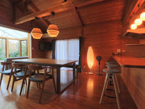 1日1組の貸切ログハウスで、家族も仲間も周りを気にせず別荘気分。キッチン用品完備で自炊・持込OK。オステリア・イルファーロの食事付プランも。