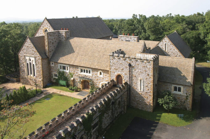 イギリスのマナーハウスをモチーフにした美術館。アンティークステンドグラスがあしらわれた礼拝堂が3つあり、あたたかみのある繊細なガラスの美しさに目を奪われる。
