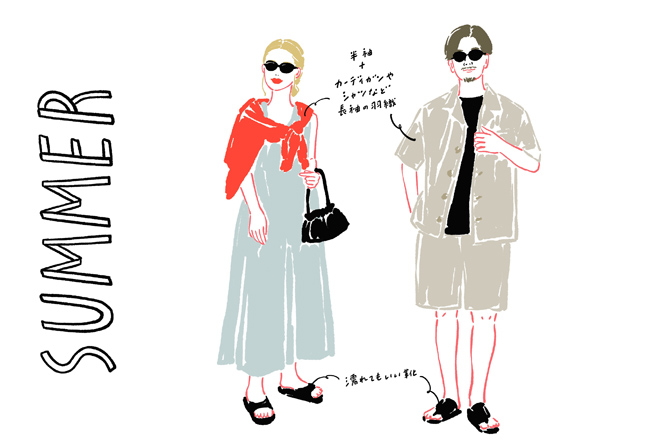 7月、8月になると、旭川など内陸では近年35℃近くまで気温が上がるようになりました。基本的には半袖で快適に過ごせますが、紫外線対策を考えて、長袖の羽織が1枚あると活躍しそうです。