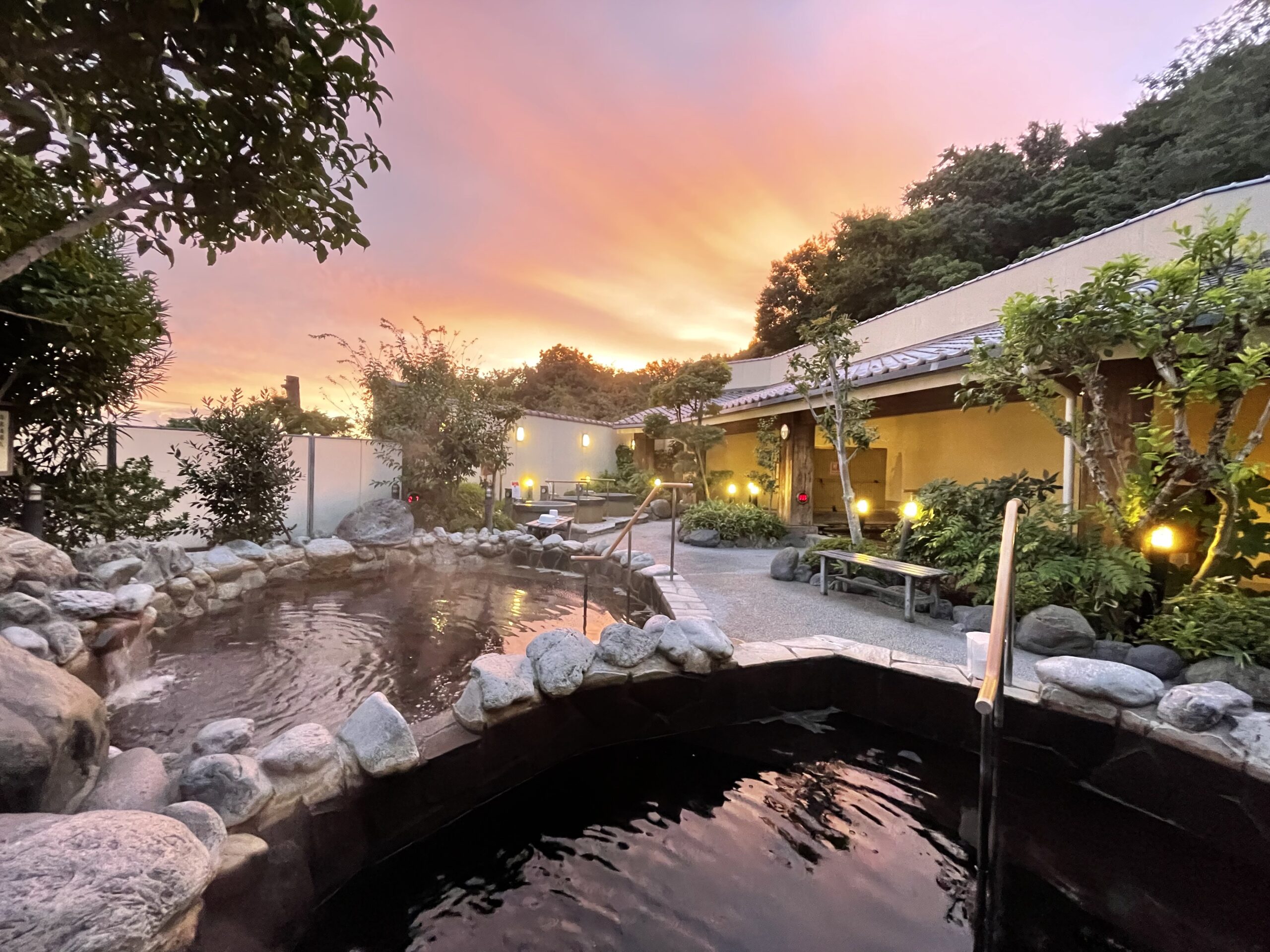 湯河原から運ばれてくる温泉をさまざまなお風呂で楽しんで