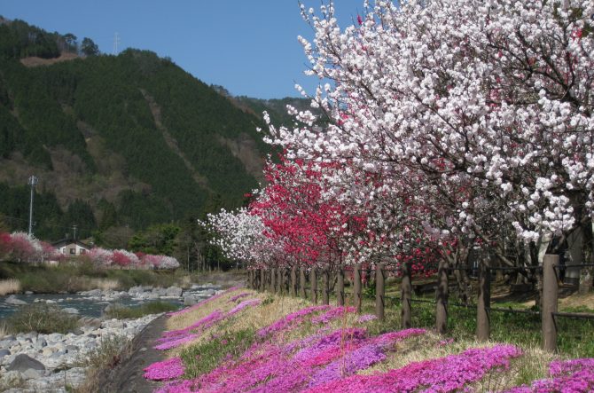 川沿いや中央アルプスを背景に咲く花桃など、写真映えするロケーションも多く、見応えがあるエリアです。
