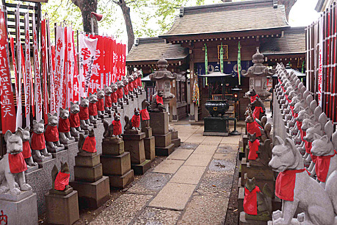 愛知県にある円福山豊川閣妙厳寺、通称・豊川稲荷の直轄別院で、鎮守は豊川荼枳尼眞天。本殿前や霊狐塚など、境内ではバリエーション多彩で表情豊かなお狐様にたくさん出会える。また、弁財天や大黒天などもあり七福神巡りも可能。コンパクトな空間ながら、バラエティに富んだ参拝ができる。