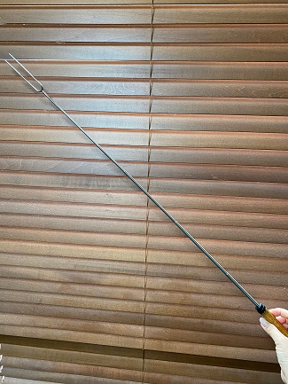 我が家では“ソーセージくるくる”という愛称で呼んでいますが、バーベキューフォークです。愛用しているのは写真のコフランステンレスコーピングフォーク。持ち手のところにあるダイヤルで先端の串の部分を回転することができ、均一に火を通すことができます。伸び縮みしてコンパクトになります!小技が効いてます。(高崎)