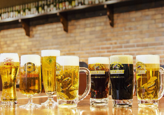 パブ・キリンならではの生ビールを使った「ビーフの黒ビール煮込み」や、ビールとの相性が抜群のパブキリン人気メニュー「フィッシュ&チップス」、ビアホールの定番「ソーセージ盛合せ」などのメニューを7種類の生ビールとともに楽しむことができます。昼と夜の飲み放題コースなども用意されています。