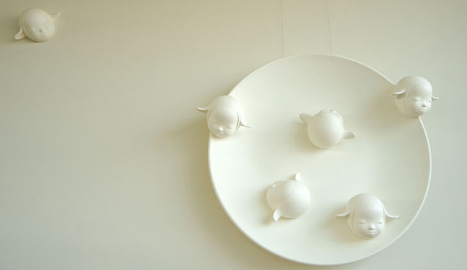 動物の中でも数多くモチーフにしている「犬」、《Your Dog》は巨大なインスタレーション作品として表現されたもののひとつ。アルミニウム製でミニマルな白い表面を持ったこの作品は、どこかへこんでいるようにも見える目と、穏やかそうな表情をもった作品です。