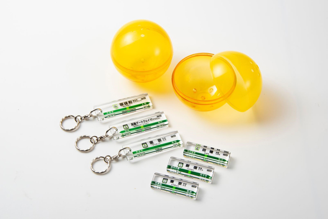 山手線駅看板キーホルダー(1個 ガチャポン 700円/通常販売 800円)、山手線駅看板hashioki(1個 ガチャポン 500円/通常販売 600円)【東京駅限定】